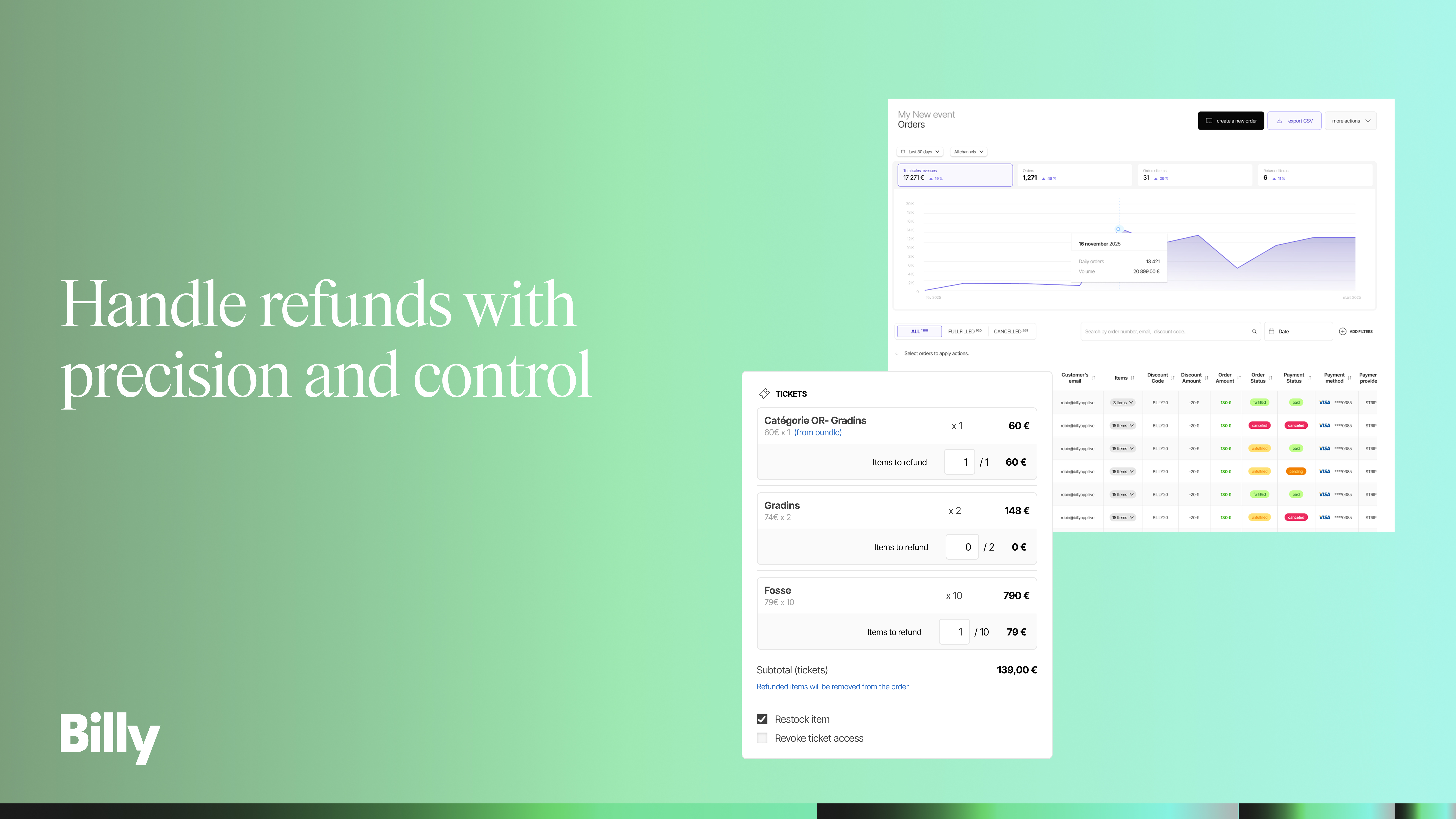 🎉 The result: Partial Refunds transform Billy into a complete order management platform, giving you the tools to handle every refund scenario professionally—from simple single-ticket returns to complex multi-channel adjustments—while keeping your inventory and finances perfectly synchronized.