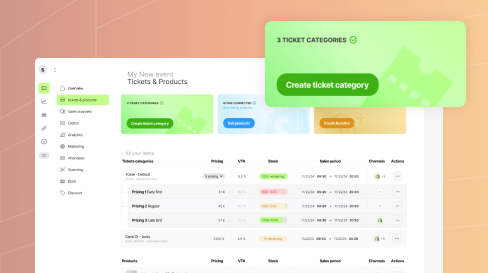 Vendez des billets seuls ou avec des produits. Créez des variations de tarifs.