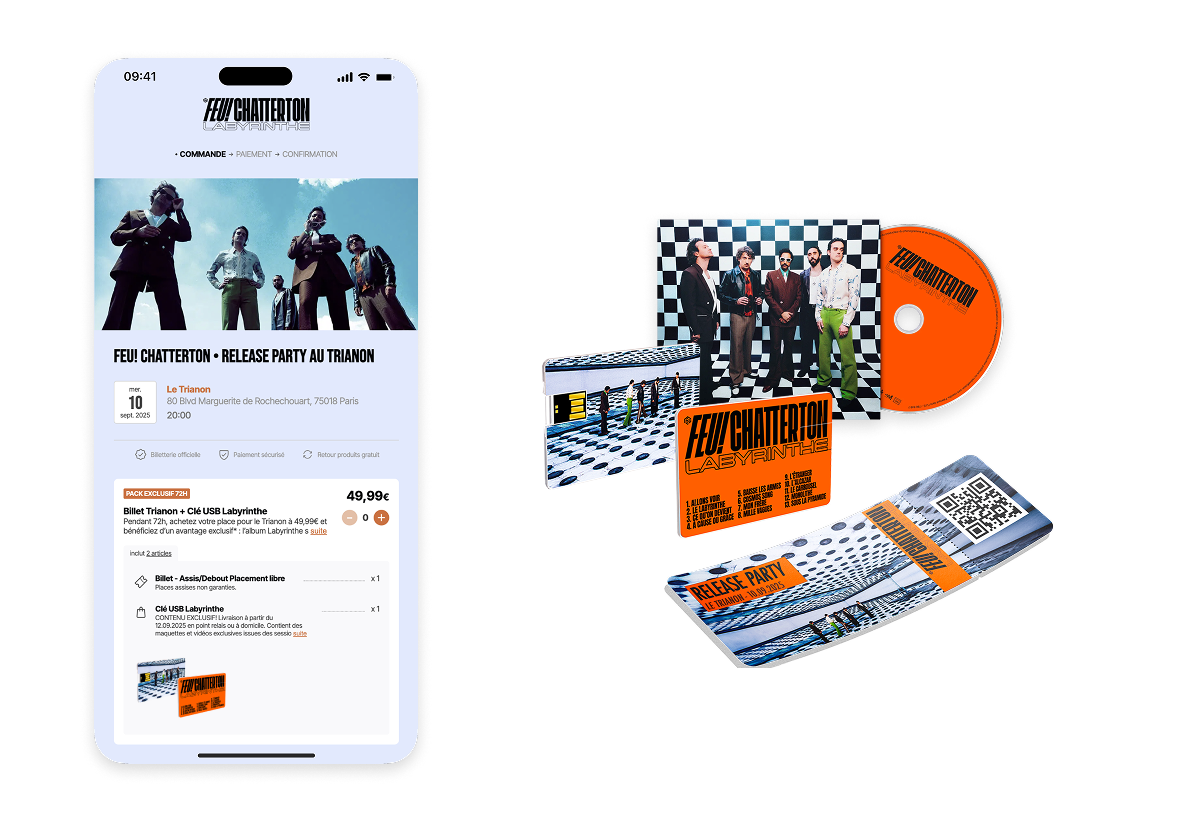 La billetterie n’est qu’une partie de l’économie d’un événement. C’est pourquoi Billy permet à ses partenaires de vendre bien plus que des billets : produits dérivés, hébergements, expériences…
